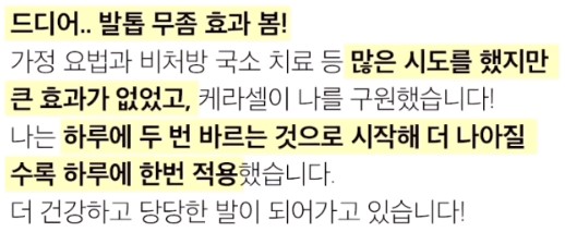 케라셀은 집에서 간단하게 하루 한 번으로 손발톱 케어를 할 수 있으니 손쉽게 홈케어 해 보시길 추천드립니다.