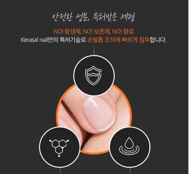 Kerasal nail의 각 성분이 복합적으로 작용하여 변색되고, 두꺼워지고, 갈라지고, 부서지는 손상된 손발톱에 건강함을 되찾아 줍니다.